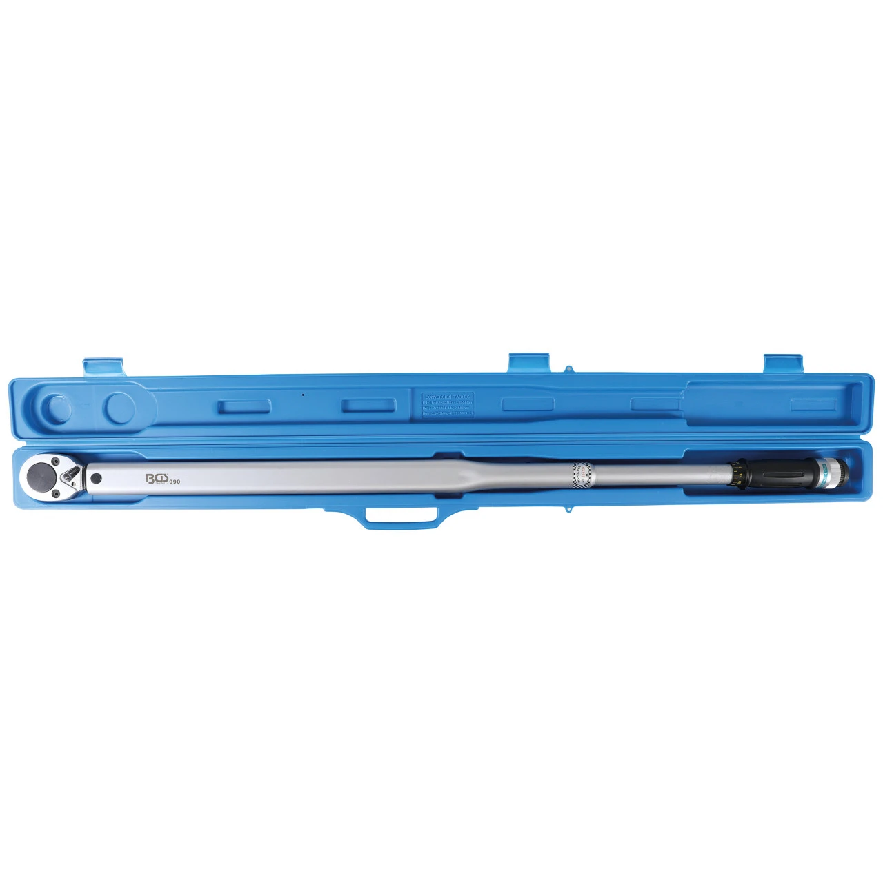 Drehmomentschlüssel mit Umschaltknarre mit 3/4″ Vierkant Antrieb, einstellbar von 140 bis 980 Nm mit Rechts- und Linksbetrieb. Somit eignet sich das Werkzeug für den professionellen Wartungs- und Reparatureinsatz am Auto, Wohnwagen und vieles mehr. Seine automatische Auslösung des Drehmomentes erkennt man durch das Klicksignal. Für eine hohe Genauigkeit ist die Umschaltknarre mit einer Schiebearretierung ausgestattet. Inklusive Kunststoffkoffer und Kalibrierungszertifikat.