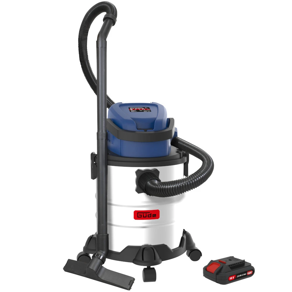 GÜDE Nass-Trockensauger mit Ausblasfunktion und Akkubetrieb. Der leistungsstarke Akku-Nass- und Trockensauger verfügt über eine 18V E³ Akkusystem, 20 Liter Edelstahlbehälter, 3-teiliges Saugrohr und 2 m Saugschlauch. Der Industriesauger ist ein praktischer Helfer im Haushalt, Werkstatt oder Auto. Dank seinen vier Lenkrollen lässt sich der Nass-Trocken-Akkusauger einfach an den richtigen Platz fahren.