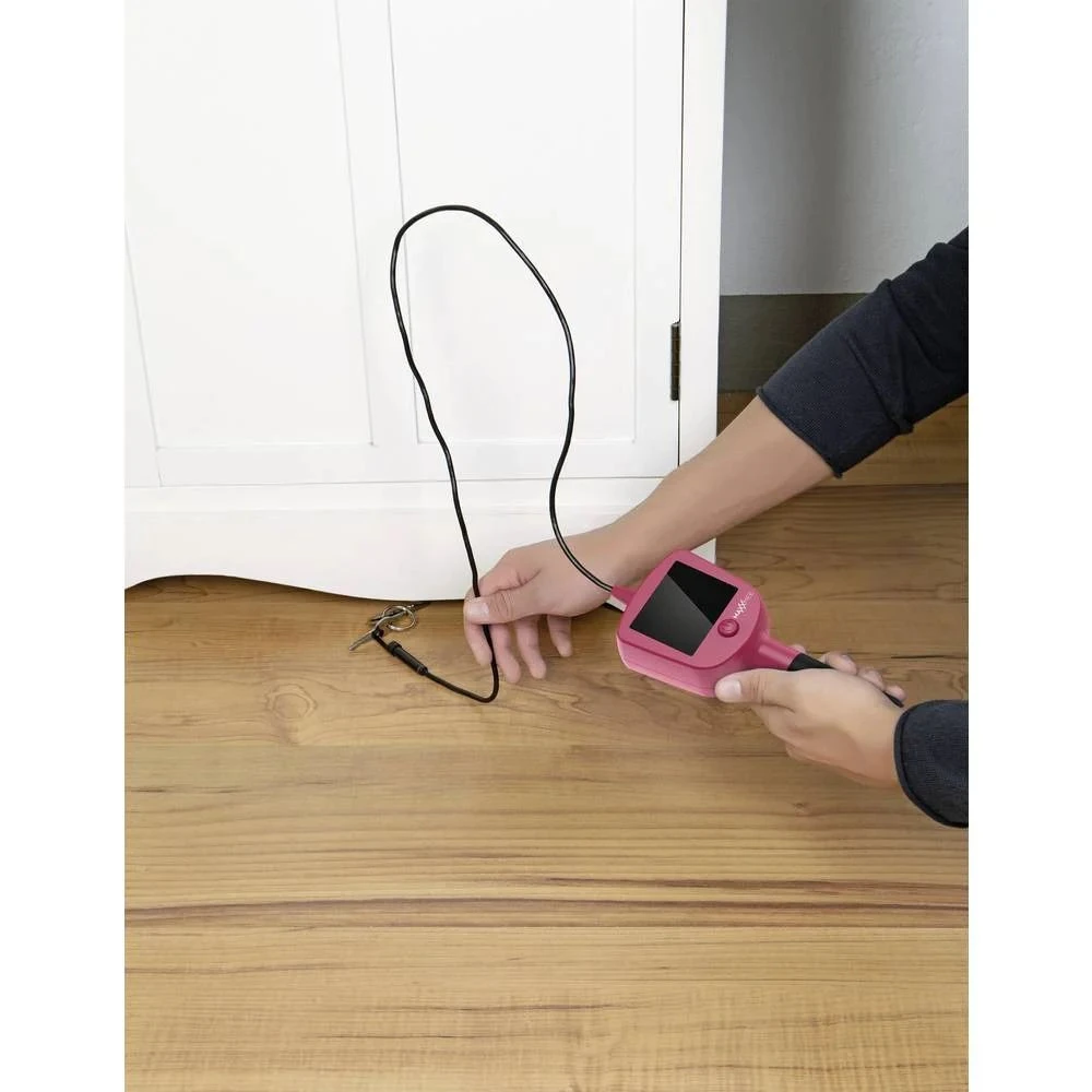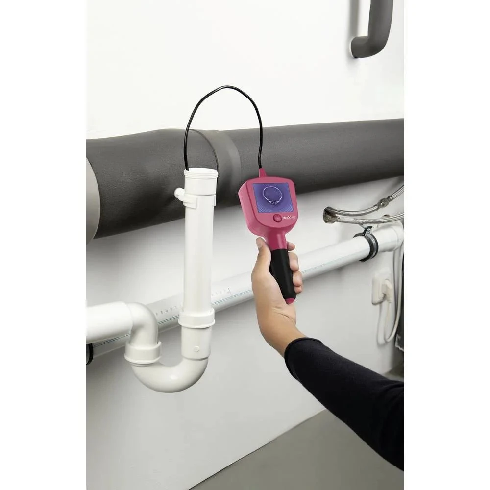 Die DIY-Endoskopkamera von „MAXXMEE“ ist ein optisches Suchgerät zur Erkundung schwer zugänglicher Stellen sowie zur Bergung von Kleinteilen. Der ca. 120 cm lange wasserdichte Schwanenhals mit Kopfkamera und dimmbarer LED-Beleuchtung passt in Abflussrohre oder durch engste Spalten. Der im Handstück integrierte übersichtliche 5 x 3,5cm große TFT-Monitor überträgt die Bilder „live und in Farbe“. Damit eignet sich die Inspektionskamera für die Fehlersuche an stromlosen Anlagen und Geräten in der Werkstatt, an Sanitäranlagen oder bei Autoreparaturen. Die drei mitgelieferten Aufsätze sind praktische Helfer zum leichteren Auffinden von verlorenen Fundstücken. Der Magnetaufsatz „fängt“ Metallteile wie Schrauben unter der Kommode, mit dem Haken zieht man Ringe aus der Versenkung und mit dem Spiegel kann man sogar im Abfluss um die Ecke schauen oder Schäden im Kfz-Bereich aufspüren. Das Werkzeug wird mit 4 x AA-Batterien betrieben (nicht im Lieferumfang enthalten).