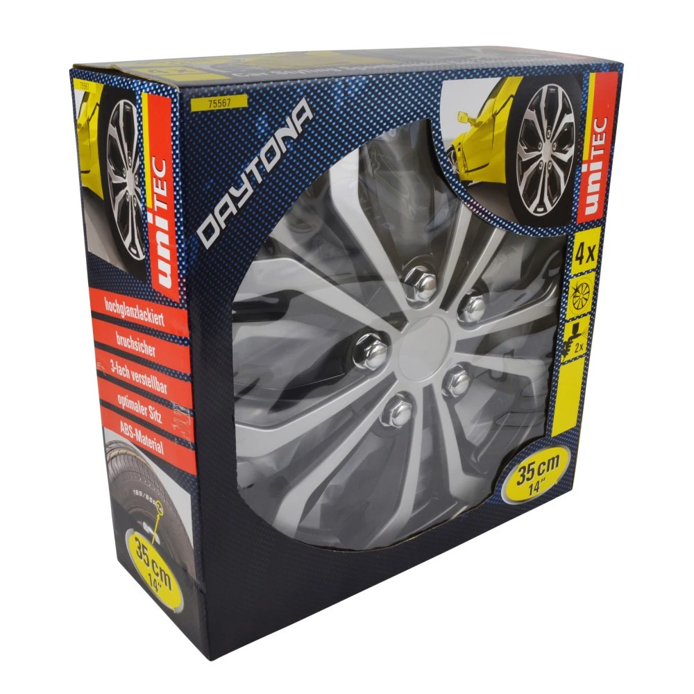 Unitec Radkappen 14 Zoll, 4 Stück, silber-schwarz, Hockenheim, Daytona