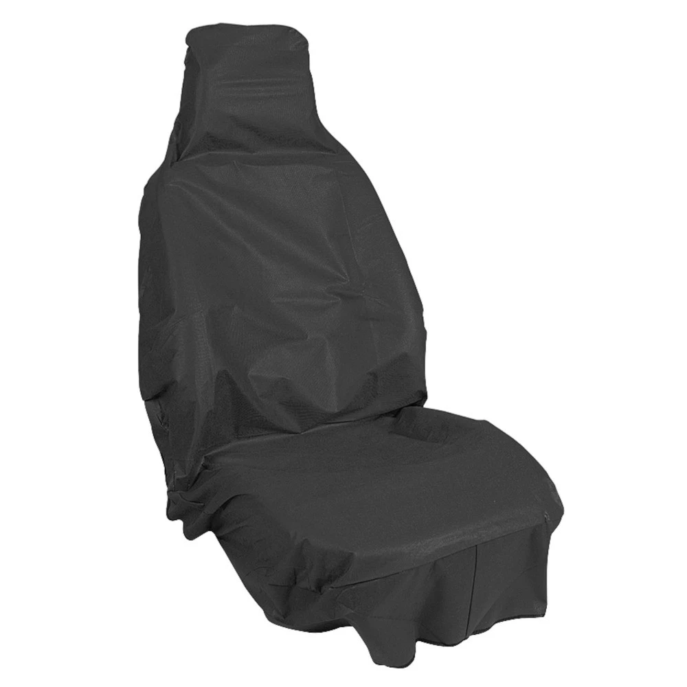Der universelle Autositzschoner aus strapazierfähigem Polypropylen-Gewebe schützt dein Autobezug vor Fett, Öl, Wasser, Essensresten und anderen Verschmutzungen. Mit seinen Maßen von 100 x 55 cm eignet er sich für die gängigsten PKWs. Egal ob für die Werkstatt, Freizeit oder bei verschiedenen Hobbys, der Schonbezug ist vielseitig einsetzbar. Einfach den Bezug über die Kopfstütze ziehen und die Gummischlaufen mit den beiliegenden Haken am Sitzgestell einhängen. Du kannst den Autositzschoner ganz einfach mit einem Feuchtigkeitstuch oder Schwamm abwischen und reinigen. Der Schonbezug ist auch für Sitze mit integriertem Seitenairbag geeignet.